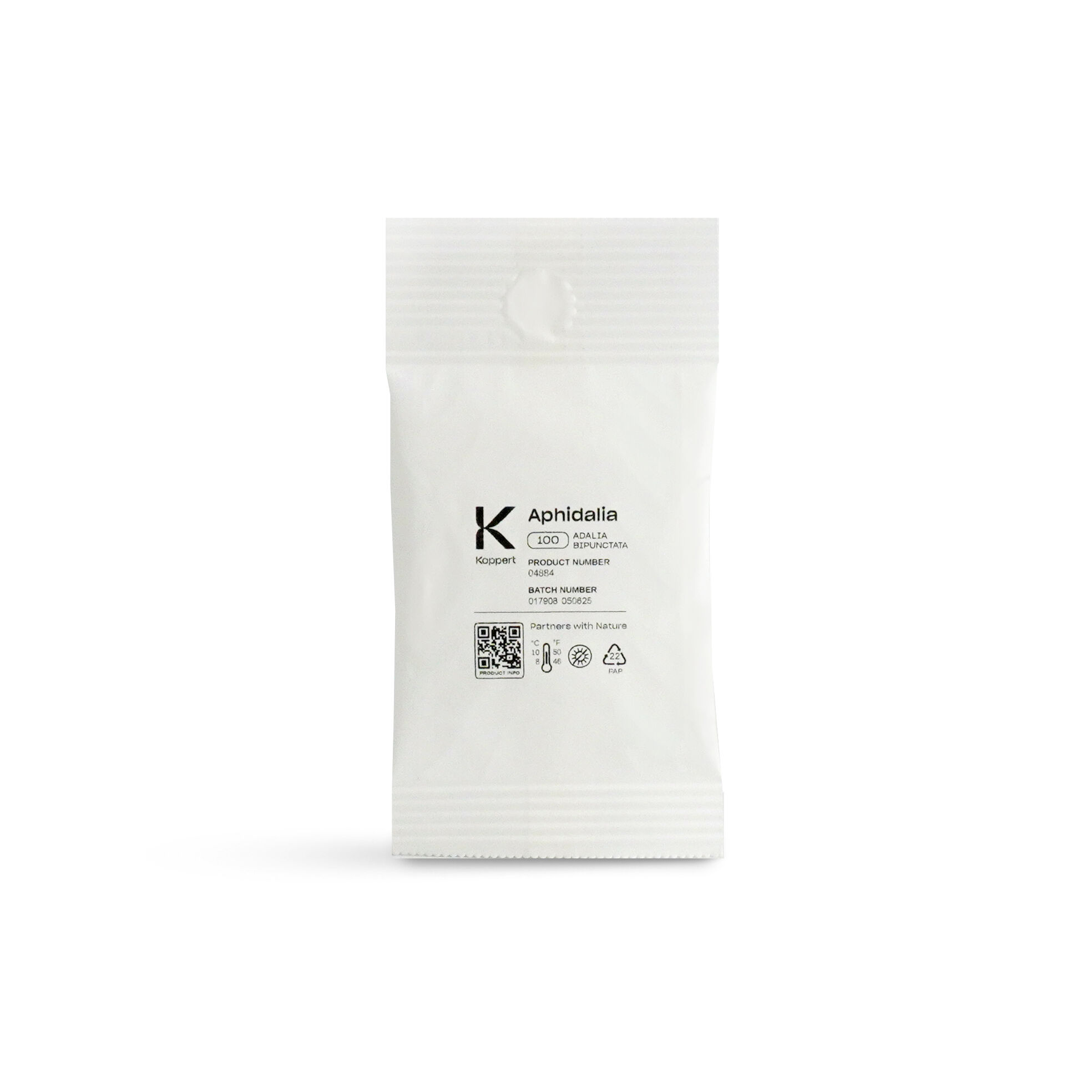 The dosage of Aphidalia depends on climate and the size of the trees and should always be adjusted to the particular situation. Start introduction as soon as the first aphids are detected on the trees. Use at least one cotton bag per tree and up to 3 bags for large trees. Consult a Koppert advisor or a recognized distributor of Koppert products for advice on the best strategy for your situation.