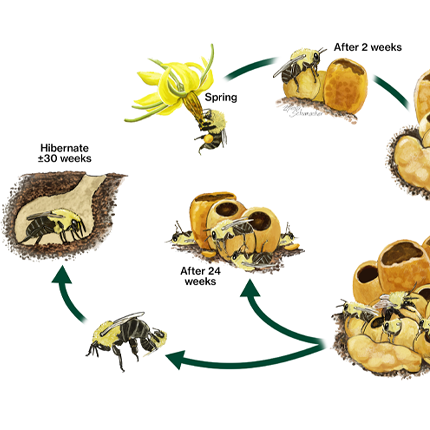 In nature, bumblebee queens hibernates alone and underground throughout the winter season. Before hibernation, the new young queens will leave the old nest and mate with drones.