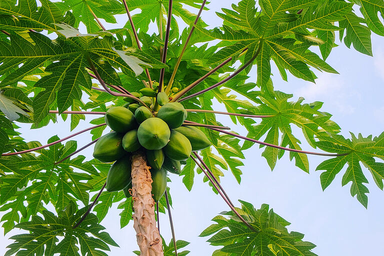 A tropical fruit that is called papaya, papaw or pawpaw in different countries, is the fruit of the Carica papaya tree of the family Caricaceae. First cultivated in Mexico, it is now grown in most tropical regions around the world. The papaya fruit is 15-45 cm in length and between 10-30 cm in diameter. Its soft skin is an amber to orange colour.