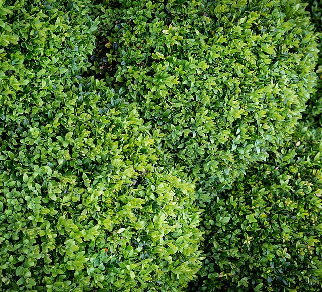 Some 70 species belong to the genus of Buxus of the family of Buxaceae. The plant is also commonly named box (mostly in English-speaking countries) or boxwood (in North America). Buxus are evergreen and slow-growing shrubs and small trees. They can grow up to 2–12 meters. The tree’s leaves are usually small (some 1.5-5 cm long and 0.3-2.5 cm wide) and leathery and their shape is round to lanceolate.
