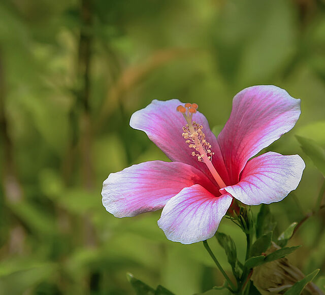 • Hibiscus is well known for its large, ornate flowers which are trumpet-shaped. These flowers have five or more petals and their colour varies from white to pink, red, orange, peach, yellow and purple.