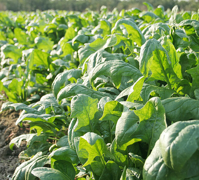 Spinach (Spinacia oleracea) is an edible flowering plant of the Amarantha family that originates in Asia. It is consumed as vegetable and is rich in iron. It is grown as a vegetable worldwide and growths to a height of about 30 cm. It is eaten fresh, steamed or boiled and has a high nutritional value.