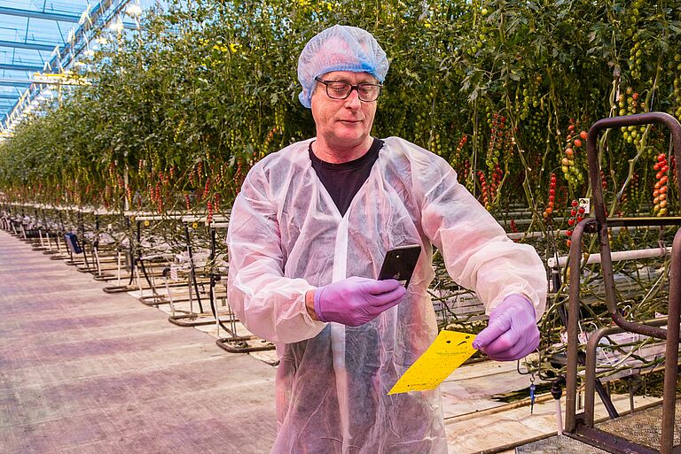 Although he still keeps an eye on the level of whitefly eggs laid, Jan says scouting for whitefly is no longer necessary. We photograph the sticky traps and immediately see how the level of infestation is developing.’