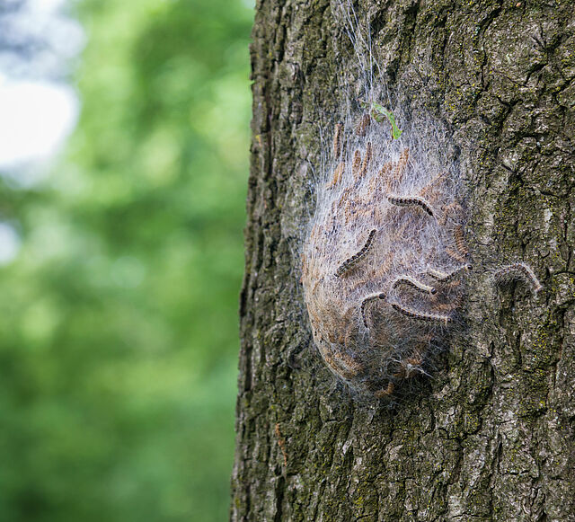 The Municipality of Enschede started using nematodes for the first time in the spring of 2021 to try to halt the spread of the oak processionary caterpillar. The municipality’s built-up area has a total of 22,000 oak trees. In the past, the municipality only extracted the nests. But as Petra Klein Breukink explains, it was not enough. She is the project manager of the oak processionary caterpillar for the Municipality of Enschede. ‘We use Koppert’s nematode product Entonem in locations where we find a range of unusual butterflies and moths. As we only do this at an early stage, there is no secondary effect on other caterpillars. We’ve treated a total of 2600 to 3000 oak trees with nematodes.’