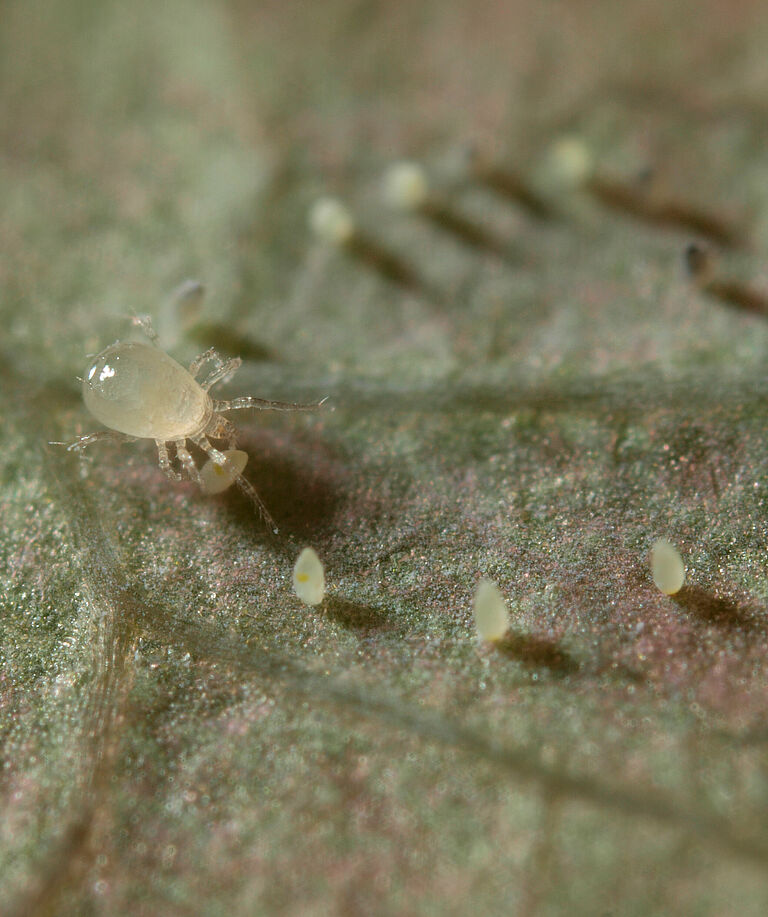 Amblydromalus limonicus is a generalist predatory mite feeding on whiteflies, thrips and other small insects and mites. It feeds on eggs, crawlers and larvae of whiteflies and has a big appetite compared to other predatory mites. Furthermore, it has a high reproduction capacity, performs well in moderate and colder temperatures and can handle high humidity. The predatory mites have a somewhat higher sensitivity to chemical pesticides.