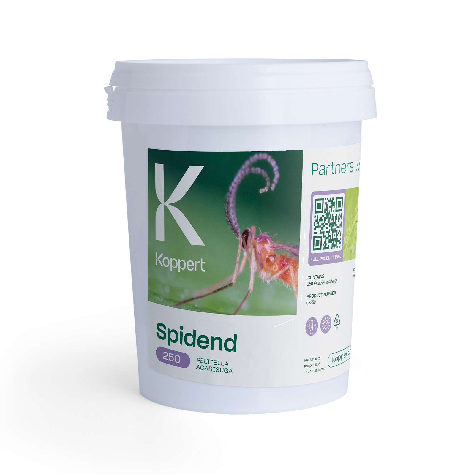 To further support pest management strategies, Koppert produces two additional natural enemies for the control of spider mites. In addition to Phytoseiulus persimilis, Koppert produces the predatory mite, Neoseiulus californicus, for added control during high temperatures and low humidity, and the gall midge, Feltiella acarisuga, for hotspot treatment of spider mite populations.