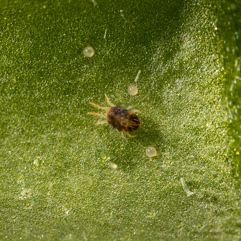 Spider mites are common pests that affect a wide range of crops. The two-spotted spider mite (Tetranychus urticae) is by far the most important species in greenhouses and many outdoor crops. Their great reproductive capacity means that they can destroy plants very rapidly. Additionally, the widespread use of chemical control agents has resulted in the spider mite developing resistance to a wide range of pesticides. Identifying the early signs of spider mite damage, such as stippling on leaves and webbing, is essential for timely intervention.