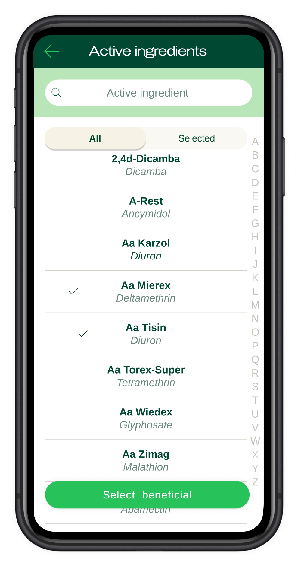 Access a detailed database to make informed decisions about integrating chemical pesticides with biological crop protection and natural pollination practices.
