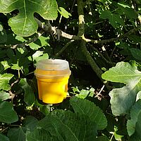 Use the Moskisan trap for monitoring and trapping Mediterranean fruit fly in combination with species-specific lure.