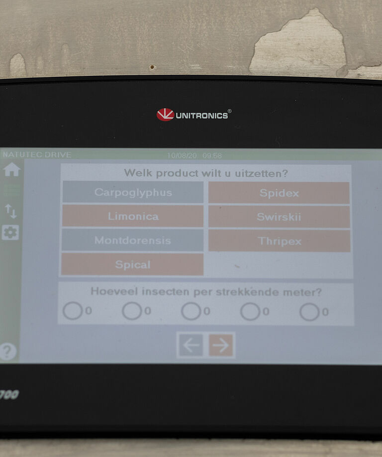 The user puts beneficial insects inside the drum, which can carry up to 30 liters of material. The Natutec Drive will rotate the drum to keep the beneficial insects homogeneously mixed. The core technology which has been used for Natutec Drive is exactly the same technology as which has been used for Natutec Drone. This specific technology is patented.This technology devides the beneficial insects equally over a number of rows. By using air, the beneficial insects are then transported through tubes and eventually land exacly onto the crop. Because of its unique design, the natural enemies suffer no damage when the blower is used.