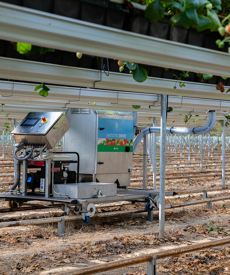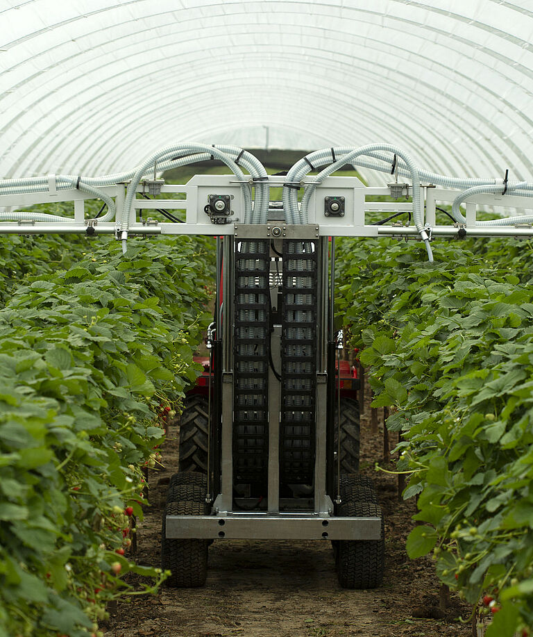Use Natutec Drive to apply Koppert products evenly over the crop to get the most effective pest control. The product is a unit with a patented release system to disperse material into an airstream for distribution through tubes over crops. The Natutec Drive is applicable in any situation and based on the specifications of the greenhouse. The Natutec Drive module can be used as a customized vehicle or on existing farming equipment, no matter what crop system.