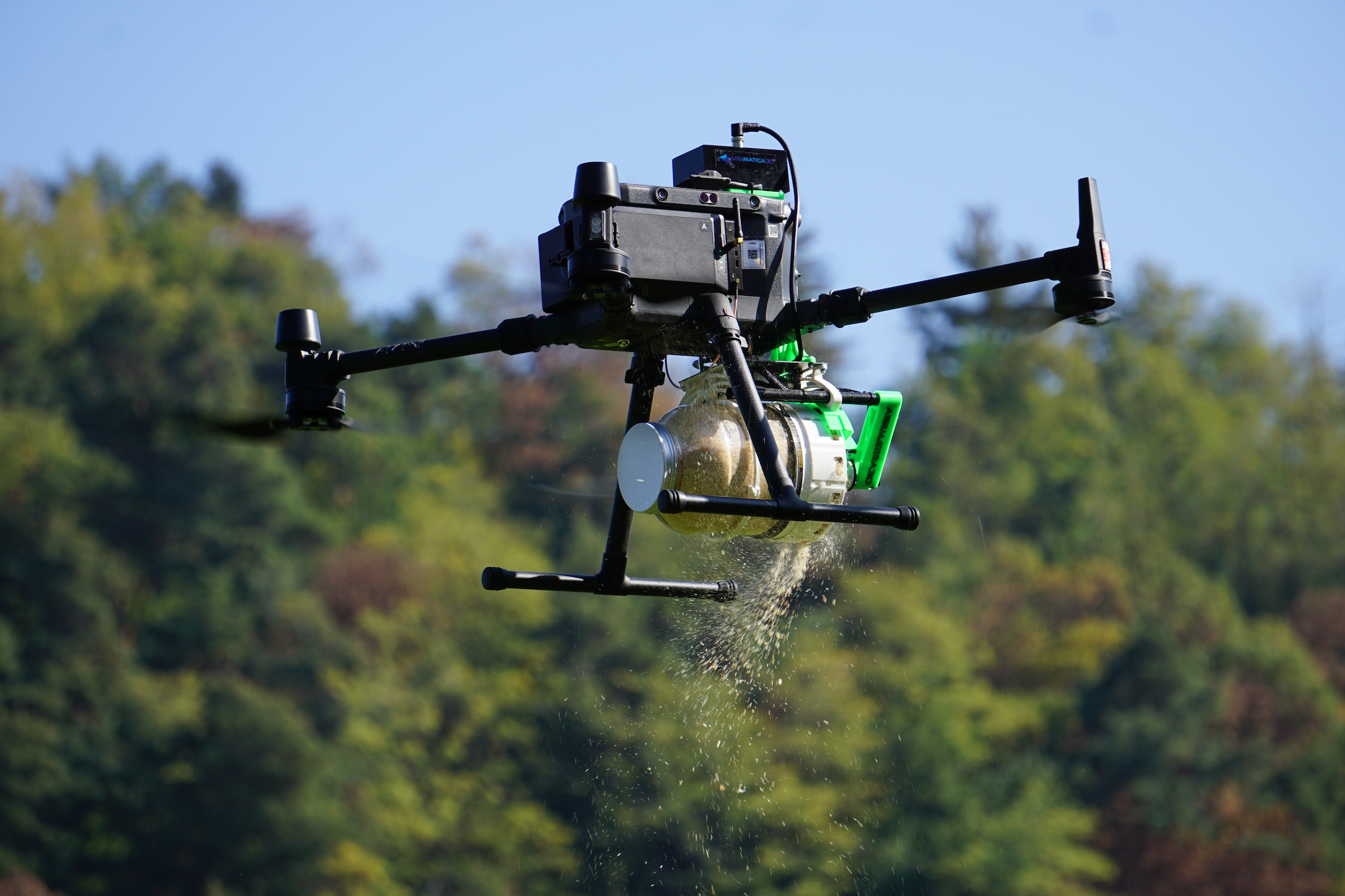 A key element in open field application of Spidex has been the development of aerial distribution using drones. Our drone distribution device won the EIMA fair innovation prize in 2022, and we'll be testing our terrestrial tractor distribution device during this year’s growing season.