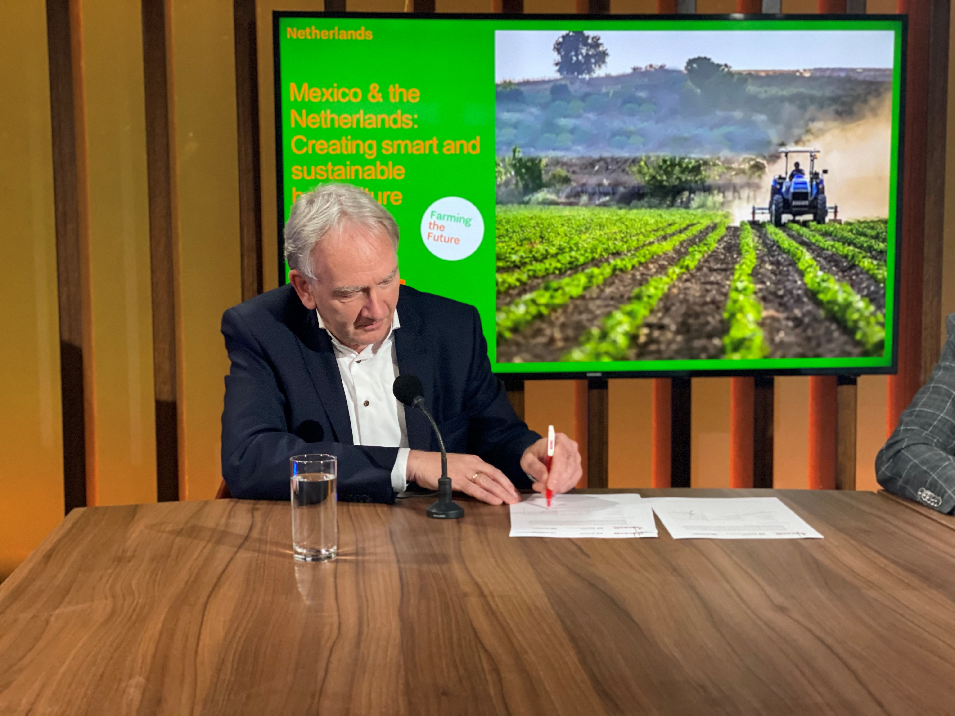 In the presence of Dutch Minister of Agriculture, Nature and Food Quality, Carola Schouten, Agricultural Minister Villalobos Arámbula of Mexico, Ambassadors Zabalgoitia Trejo and Wilfred Mohr, Felix Tarrats of Ceickor, Joep Hendricks of World Horti Center and Peter Maes of Koppert Biological Systems signed a Memorandum of Understanding (MoU) at the Dutch TV Studio in Hilversum. This signing is the start of intensive cooperation for the organisations.