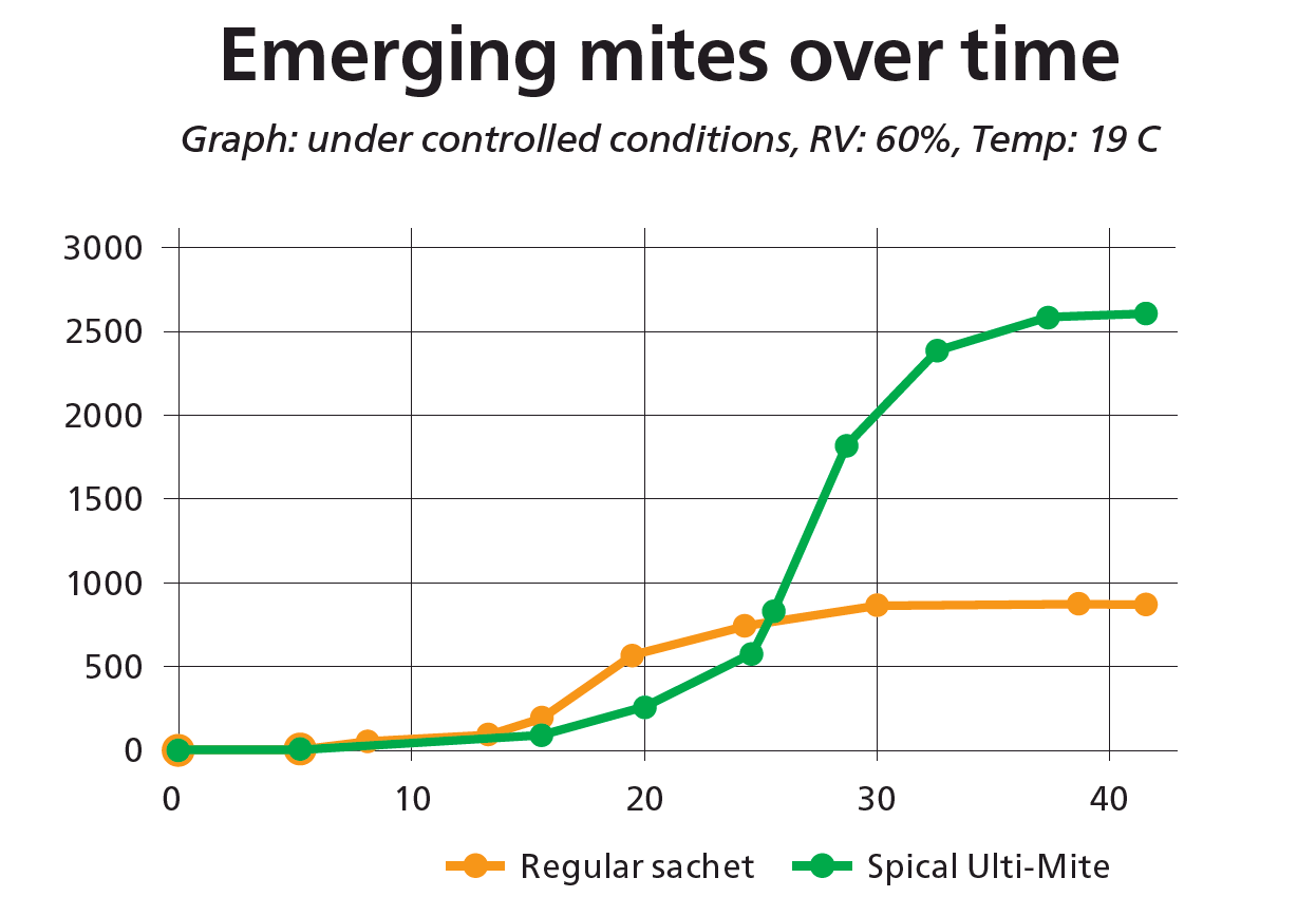 Following the success of a newly patented packaging concept by Koppert Biological Systems, Spical Ulti-Mite will soon be available in a high-tech foil sachet that ensures consistent performance in variable climatic conditions. Compared to other regular paper sachets in the market, the Spical Ulti-Mite foil sachets perform up to three times better. Trials have proven that Spical Ulti-Mite consistently delivers higher numbers of predatory mites under challenging conditions. Spical Ulti-Mite will be available as of 7 November.