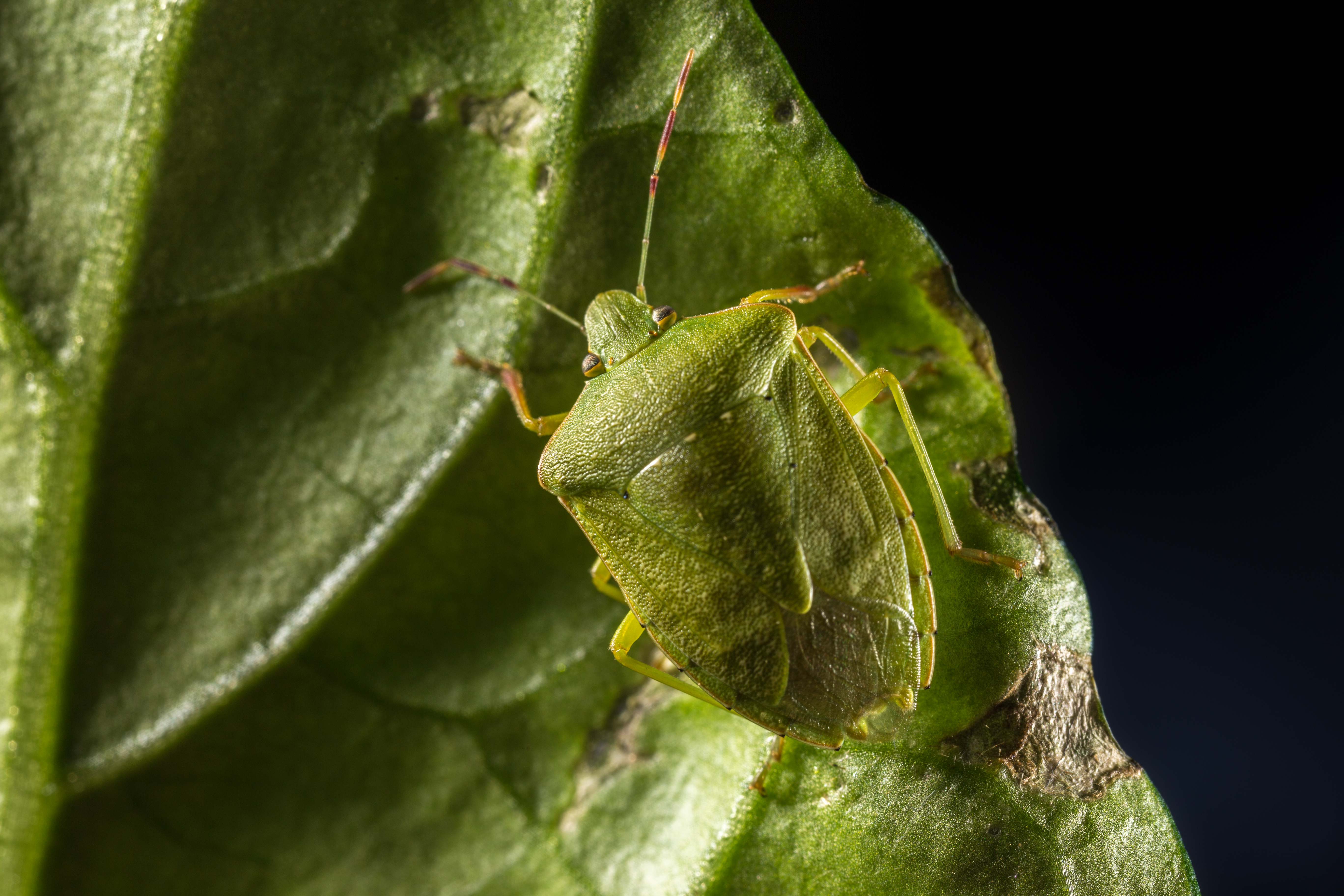 Heteropteran bugs form a group in the order Hemiptera, a highly diverse group of insects, containing both harmful and beneficial species. Heteropteran bugs are insects which have flattened bodies and fold their wings flat over their body when at rest. The wings overlap each other exposing the scutellum, a prominent triangular region of the thorax between the wing bases. This distinguishes them from beetles, which have hard, leathery forewings that meet, but do not overlap, in the dorsal midline. Some bugs produce a pungent odour. Heteropteran bugs are hemimetabolous insects. Their life cycle consists of an egg, usually five nymphal instars and the adult insect. Several species of especially the families Miridae and Pentatomidae are found as pests in agricultural crops.