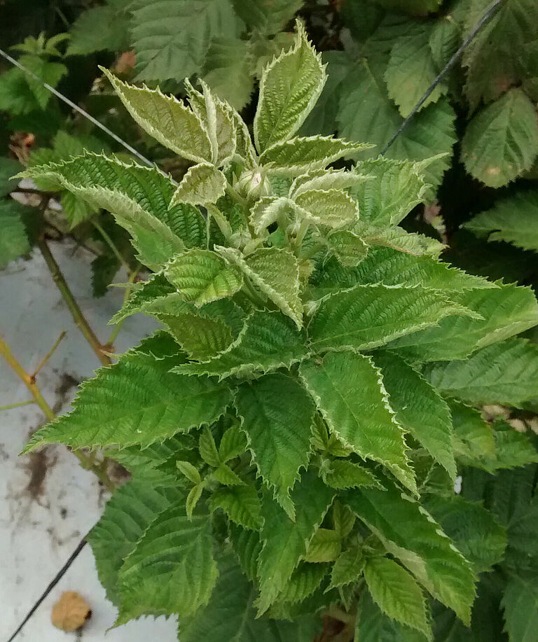 The damage caused by the broad mite (Polyphagotarsonemus latus) can look similar to the damage caused by viruses. The typical pattern of damage consists of malformation and distortion of the above-ground growth of the plant. The mites show a preference for young, developing plant tissue, like the growing tips, young leaves and flower buds. The mechanism causing the deformation is not yet fully understood, possibly the mites, whilst sucking out the contents of plant cells, secrete substances that disturb local growth.