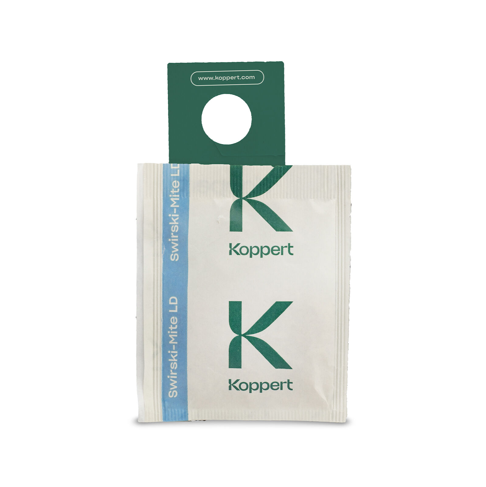 The dosage of Swirski-Mite LD depends on climate, crop and pest density and should always be adjusted to the particular situation. Start introduction preventively or as soon as the first pest mites are detected in the crop. Use at least 4,000 sachets per ha and hang them evenly spaced in the crop. Release should be repeated after 5-6 weeks if the pest is not controlled. Consult a Koppert advisor or a recognized distributor of Koppert products for advice on the best strategy for your situation.